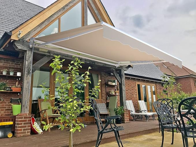 - WATER AND UV RESISTANT - The retractable awning is made of 280g polyester and PU coating fabric, which is water resistant, anti ultraviolet, resistant to sun fading, also has 30UV+ solar protection.
