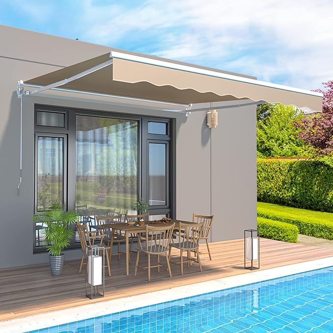 AECOJOY 13'×10' Manual Retractable Awning Sun Shade Patio Awning Cover Outdoor Patio Canopy Sunsetter Deck Awnings with Manual Crank Handle, Beig